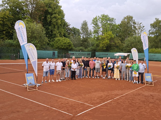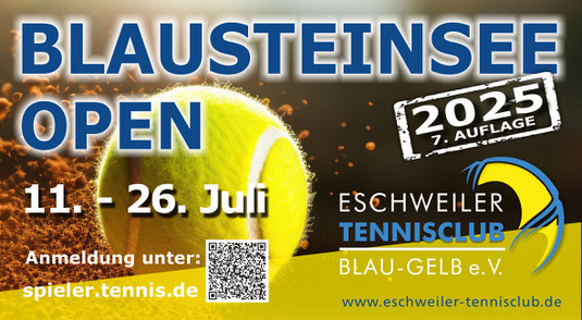 Der Eschweiler Tennisclub Blau-Gelb bedankt sich bei allen Teilnehmerinnen und Teilnehmern, bei den Zuschauerinnen und Zuschauern, den vielen Ehrenamtlichen sowie den Sponsoren. Schon jetzt geht der Blick in Richtung 2026, wenn die 8. Auflage der Blausteinsee Open ansteht. Das Turnier beginnt am 17. Juli. Da der Verein im kommenden Jahr 100 Jahre alt wird, möchte er sich die eine oder andere Überraschung für das Jubiläumsjahr einfallen lassen.